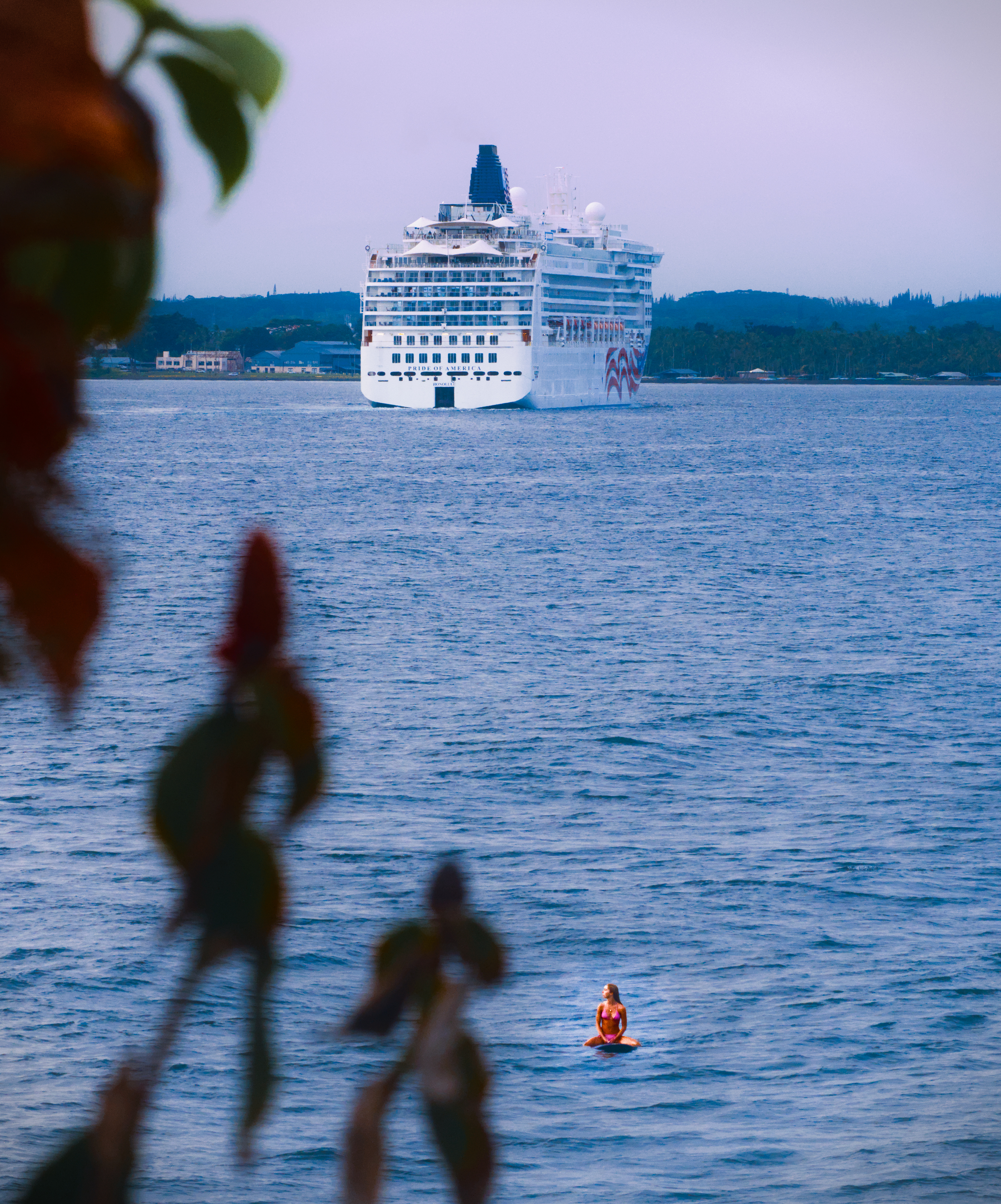 Pride of America and a surfer